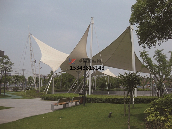 景觀膜結構公司外觀獨特,膜結構公司膜材料本身特有的顯色性,在夜間彩燈的映射下能形成絢麗繽紛的景觀,展示了張拉膜造型結構構件清晰受力的藝術之美,帶來給人們時尚、輕松的休閑感受。膜結構公司膜材在每一步制作時,都會嚴格把控。