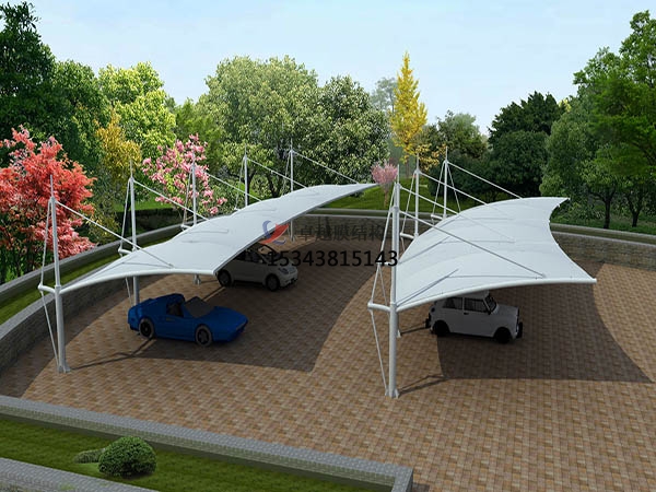 膜結構車棚的篷布材質是膜結構,而膜材的*大特點是強度高、耐久性好、防火難燃、自潔性好,不受紫外線影響,使用壽命長,一般15-30年。