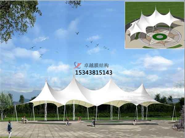 景觀結(jié)構(gòu)形式:四周軟邊骨架式膜結(jié)構(gòu)景觀小品