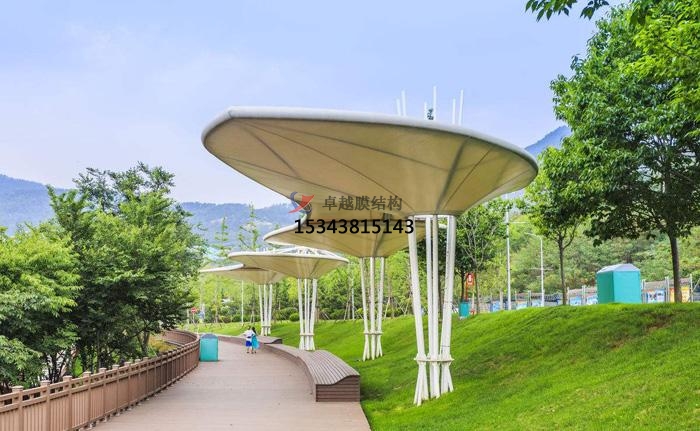 膜結構景觀是用輕質(zhì)高強度柔性薄膜材料與支撐體系相結合形成的具有剛度和穩(wěn)定曲面、可以承受載荷,能夠負荷大空間的結構形式。