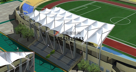張拉膜看臺主要用于各類地方體育場主席臺雨棚,各類學(xué)校體育場看臺雨棚遮蓋,我公司是國內(nèi)較早從事大懸挑張拉膜結(jié)構(gòu)看臺設(shè)計施工的專業(yè)廠家,下面介紹一下我們在呂梁市周邊縣市完工的一些張拉膜看臺設(shè)計施工案例,我公司先后在呂梁市周邊承接了呂梁學(xué)院張拉膜看臺雨棚、呂梁市農(nóng)業(yè)學(xué)校張拉膜看臺罩棚、呂梁經(jīng)濟管理學(xué)校張拉膜看臺遮陽棚遮陽棚張拉膜看臺遮陽棚張拉膜看臺遮陽棚等設(shè)計施工項目,簡介如下: