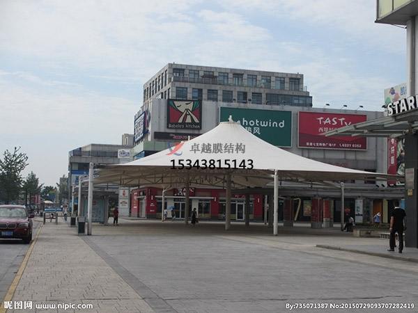 膜結構雨棚是一種全新的建筑結構形式,它集建筑學、結構力學、精細化工與材料科學、計算機技術等為一體,具有很高技術含量。其曲面可以隨著建筑師的設計需要任意變化,結合整體環境,建造出標志性的形象工程。