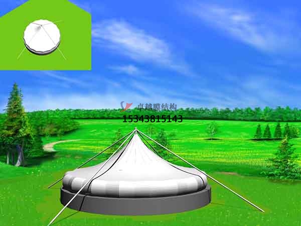 2、膜結構是目前發展很快的一種新型空間結構,是一種效率極高的張力集成體系,可以充分發揮鋼索的強度與張拉整體結構的空間作用。它通過鋼骨架、鋼索與膜材共同受力形式穩定曲面來覆蓋建筑空間,具有高度的形體可塑性和結構靈活性,即通過對膜材內部施加一定的預張力,使其具備了抵抗外荷載能力,從而充當結構材料的一種結構體系。我公司先后在格爾木地區承接污水池處理池膜結構封閉的設計施工,簡介如下: