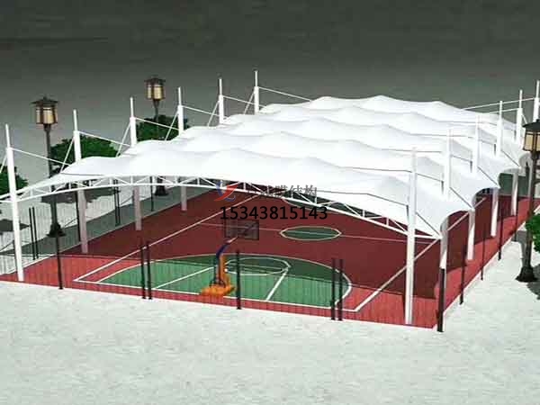 膜結構籃球場雨棚優勢:其優勢可分為性能優勢、功能優勢、施工與經濟優勢、美觀優勢四大類。性能優勢表現在其輕質高強,膜結構雨棚采用的膜材料重量輕,但強度高,如高強度聚酯纖維織物與 PVC 涂層的組合,在保證雨棚安全性的同時,還能實現大跨度、無柱設計,為籃球場提供寬敞、無遮擋的運動空間。抗候性強,高性能的 PVC 或 PTFE 等膜材料,具有極強的抗紫外線、耐腐蝕、抗老化等特性,能在惡劣天氣條件下保持良好性能,延長雨棚使用壽命。自潔性好,許多膜材表面有防污涂層,在自然風力和雨水沖刷下可保持自潔,減少清洗和維護頻率,同時保證膜材的美觀和透光性;功能優勢表現在其遮陽擋雨,能有效遮擋陽光和雨水,為球員和觀眾提供舒適的環境,使籃球場在各種天氣條件下都能正常使用,提高場地利用率。通風透光,具有良好的透光性和透氣性,可自然采光,減少電能消耗,同時保證場館內空氣流通,為運動員和觀眾創造舒適的環境;施工與經濟優勢表現在施工簡便,膜結構雨棚的施工周期短,膜材在加工廠統一加工后運輸到現場安裝,且主體鋼結構基本材料也可在工廠完工,直接拉到現場安裝,節省現場施工時間。成本較低,相比傳統的混凝土結構風雨球館,膜結構雨棚的造價更低,且維護成本也低,長期來看具有較高的性價比;美觀優勢表現在其造型多樣,膜結構雨棚采用獨特的曲面設計,線條流暢,可以根據客戶需求定制不同的顏色、圖案和形狀,如弧形、穹頂形、錐形等,使籃球場更具個性,提升球場檔次。融合性好,能夠與周圍環境和諧融合,無論是在學校、公園、小區還是商業場所,都能成為建筑的一個亮點。